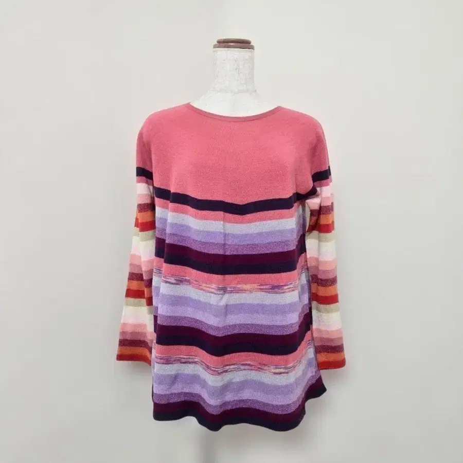 코레트 긴팔 니트 풀오버 라운드넥 보더 핑크 계열 일본제
