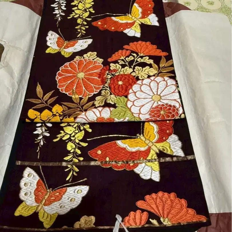 꽃과 나비 자수 후쿠로 오비 후리소데