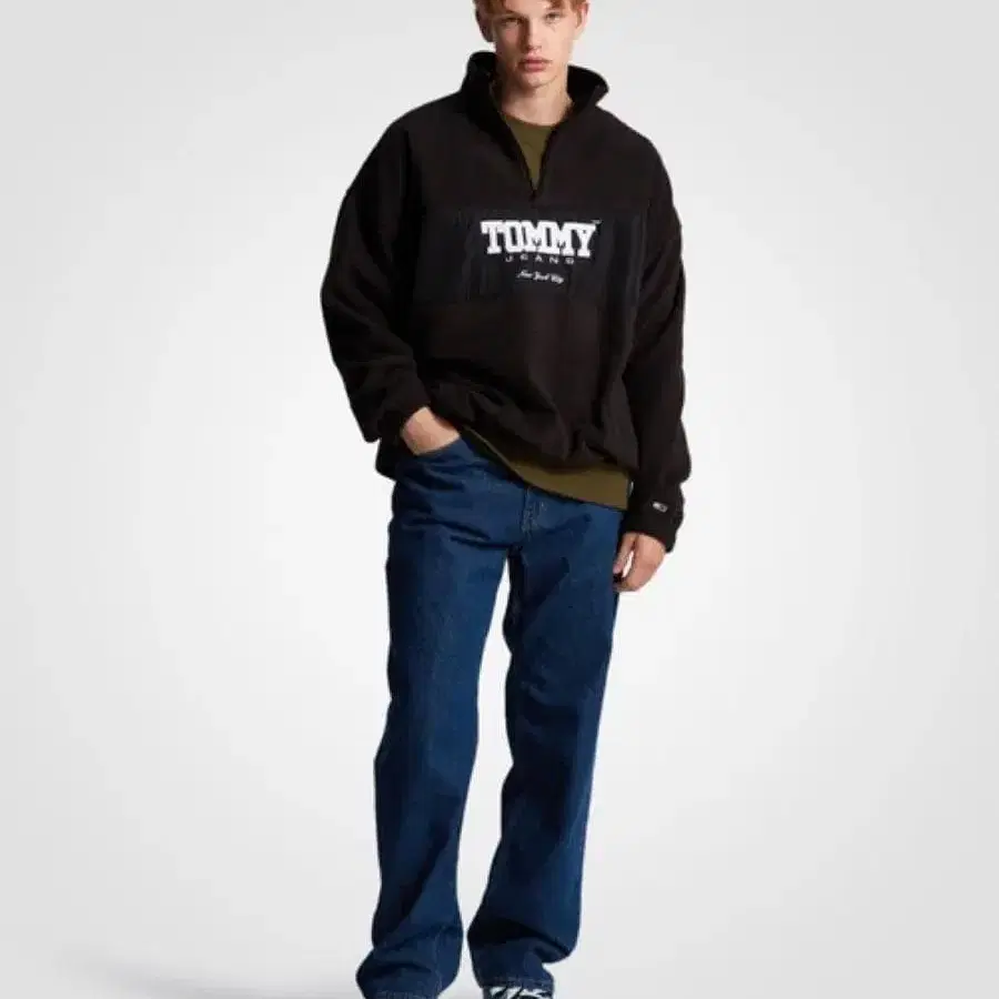 TOMMY JEANS 블랙 하프 지퍼 후드티