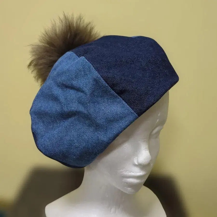 패치워크 디자인 퍼 달린 베레모