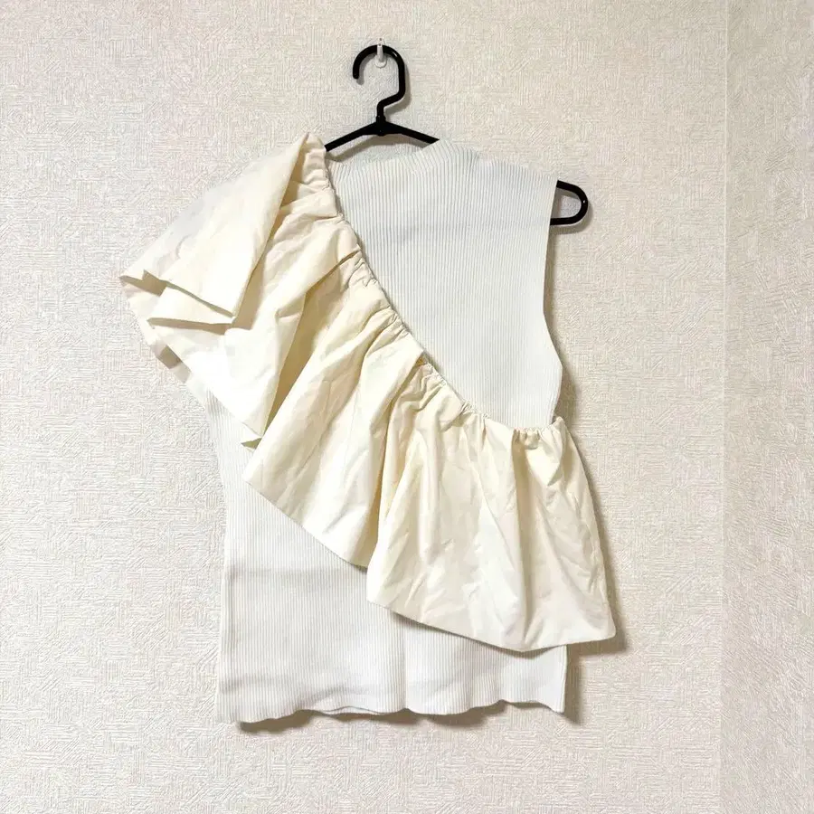 셀포드 프릴 장식 화이트 슬리브리스 니트 화이트