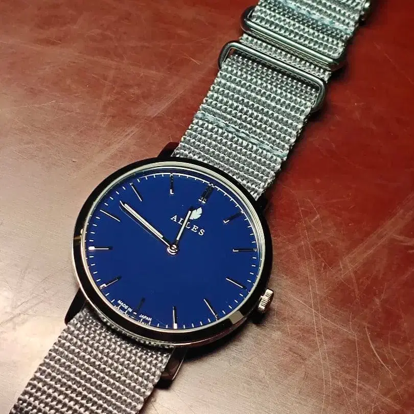 일본제 손목시계 ALLES 파랑 다이얼 나일론 벨트