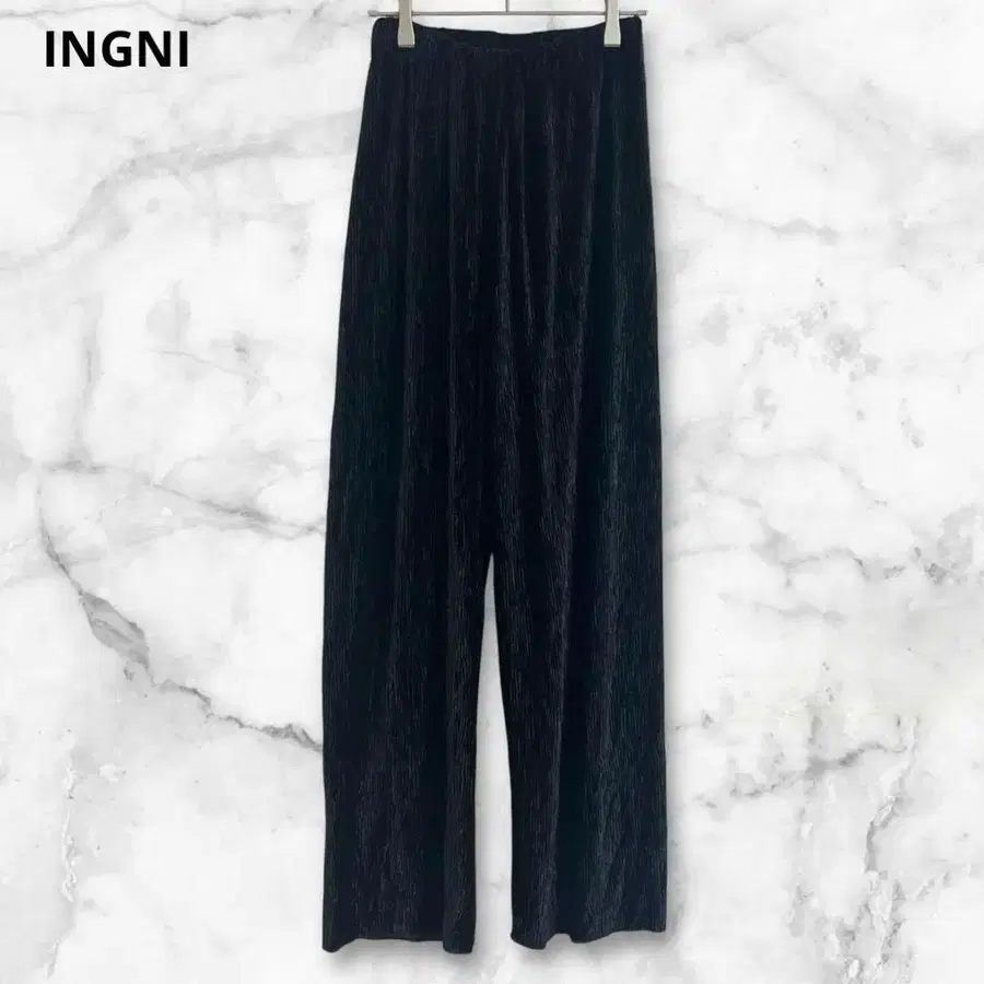 잉그 블랙 와이드 팬츠 벨로아 원단 플리츠 허리밴딩 M 심플