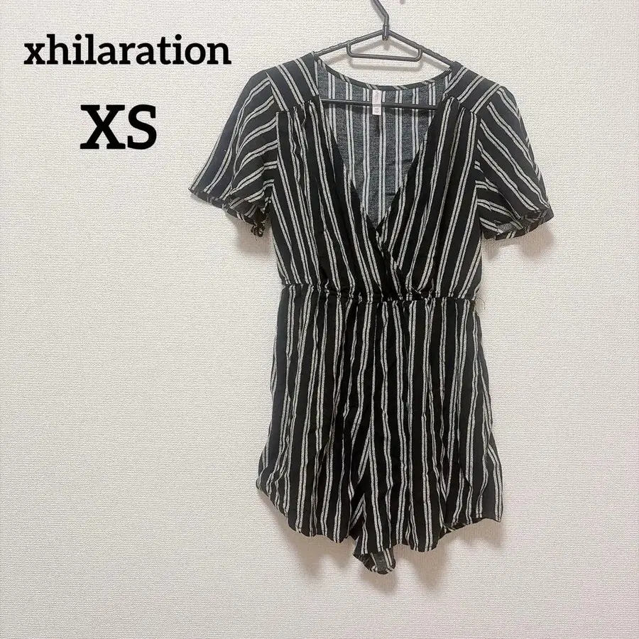 자동 번역되었어요. 원문보기스트라이프 패턴 V넥 숏 슬리브 올인원, XS 사이즈.