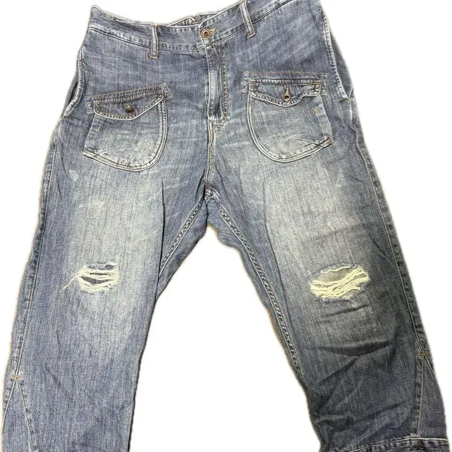 - 디자인: 데미지 가공이 있는 라이트 블루 데님 팬츠