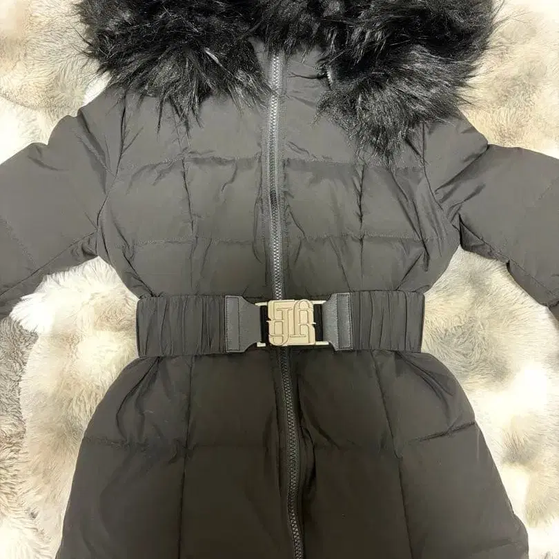 GYDA 벨트 포함 블랙 다운 자켓 퍼 포함