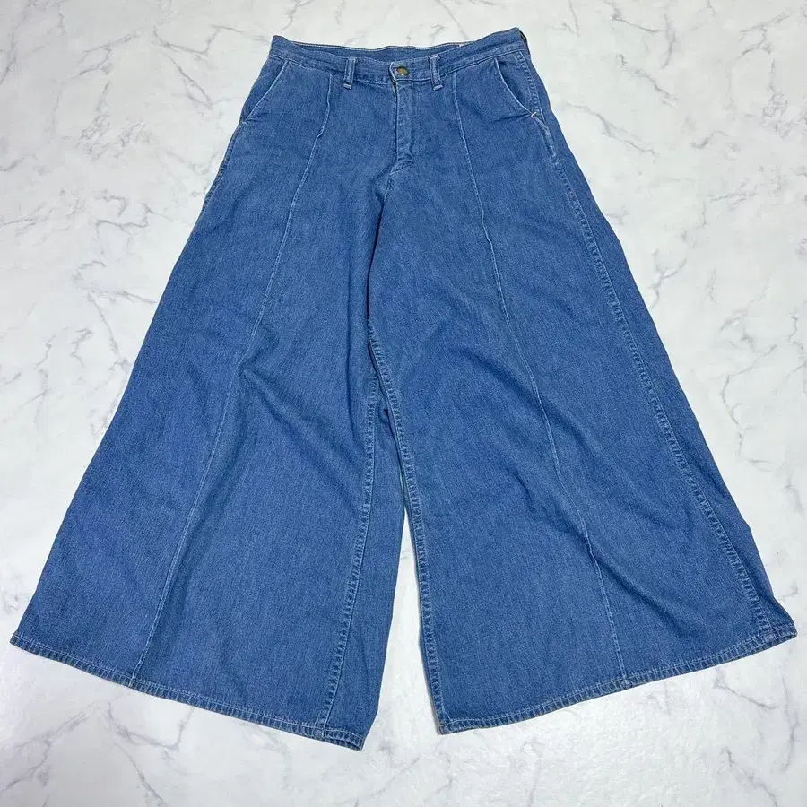 데님 소재의 가우초 팬츠, 릴랙스한 스타일에 최적.