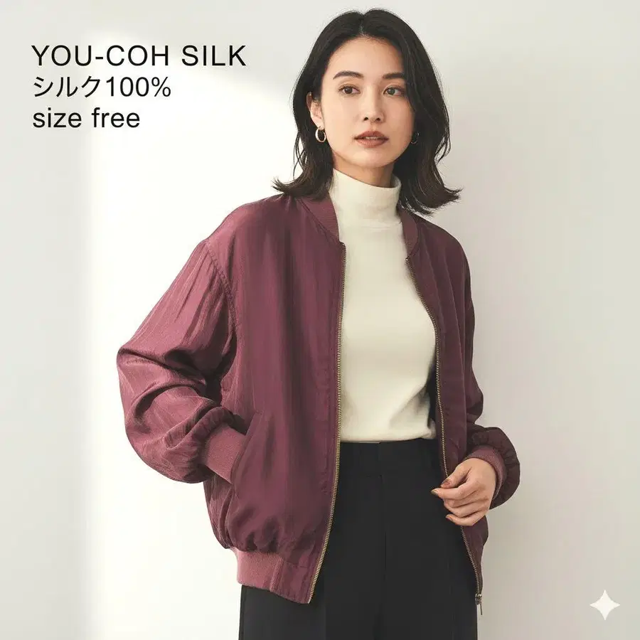 YOU-COH SILK 유코 실크 실크 100% 絹 100% 봄버 자켓 블루종 집업 점퍼 와인 레드 보르도 버건디 빨간색 보라색 여성용 프리 사이즈 새상품급 빈티지 레트로 여성 빈티지 90s 오버 사이즈 광택 고급 소재 라이트 아우터 겉옷