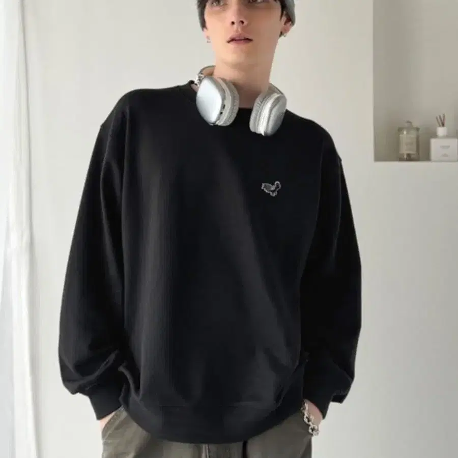 블랙 백 자수 맨투맨 트레이닝복 (긴팔)