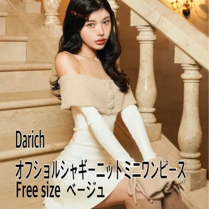 Darich 오프숄더 샤기 니트 미니 원피스 프리 사이즈 BEG