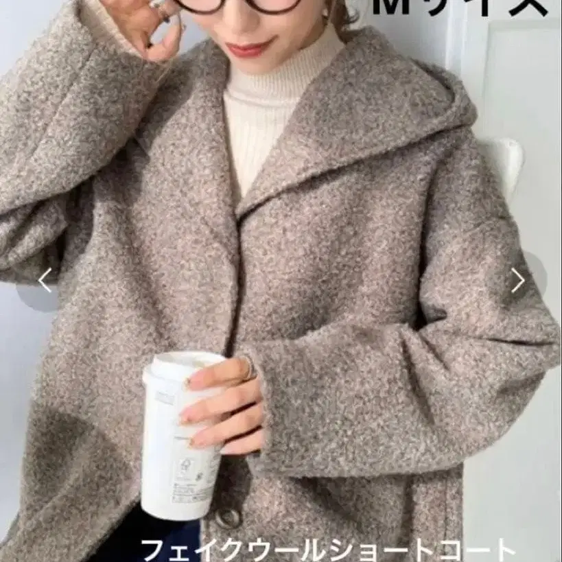 미들 코트 페이크 울 (거의 미사용) 모카 베이지 멋스러운 후드 부착