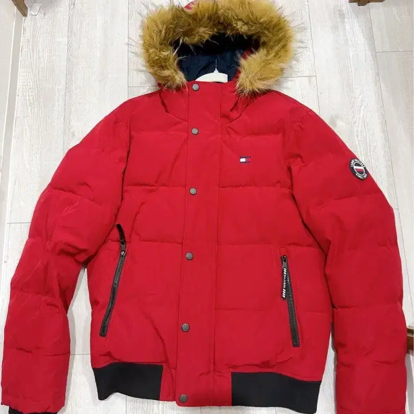 TOMMY HILFIGER 빨간색 다운 자켓 퍼 포함