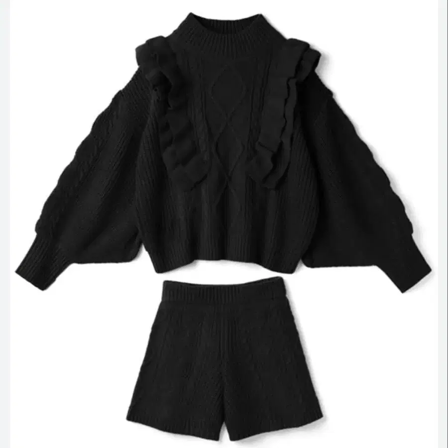 미사용 새상품 프릴 케이블 니트탑X 숏팬츠 셋업