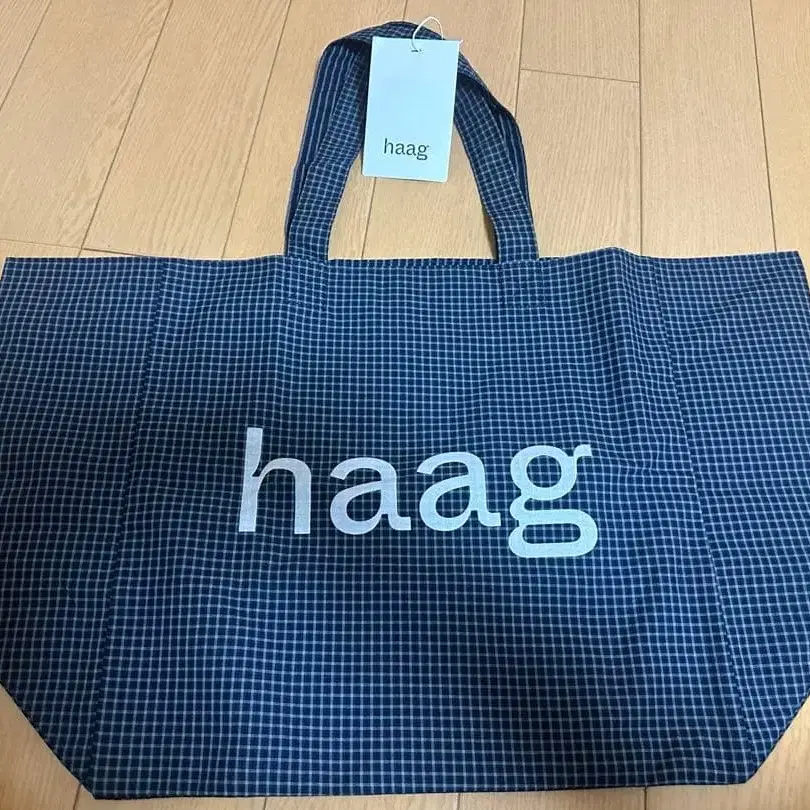 [새상품] haag 체크 무늬 토트백 네이비 한국