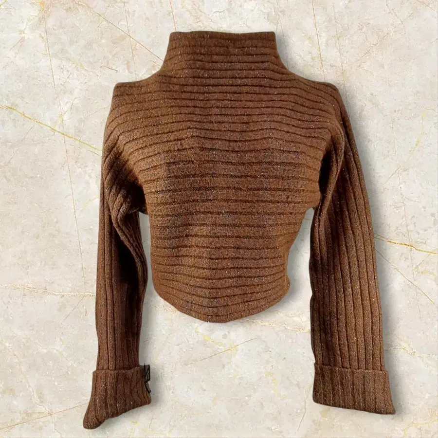 OPENING CEREMONY 가로 리브 편직 크롭 니트 하이넥