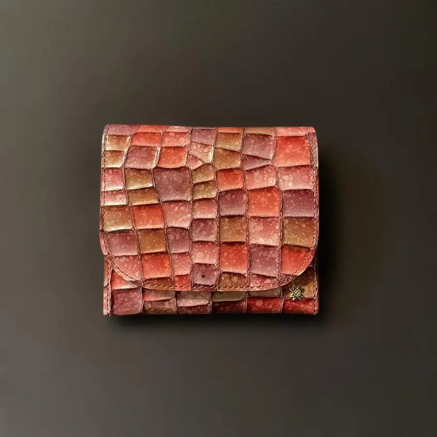 COMME CA 접이식 지갑 빨간색 계열 모자이크 패턴