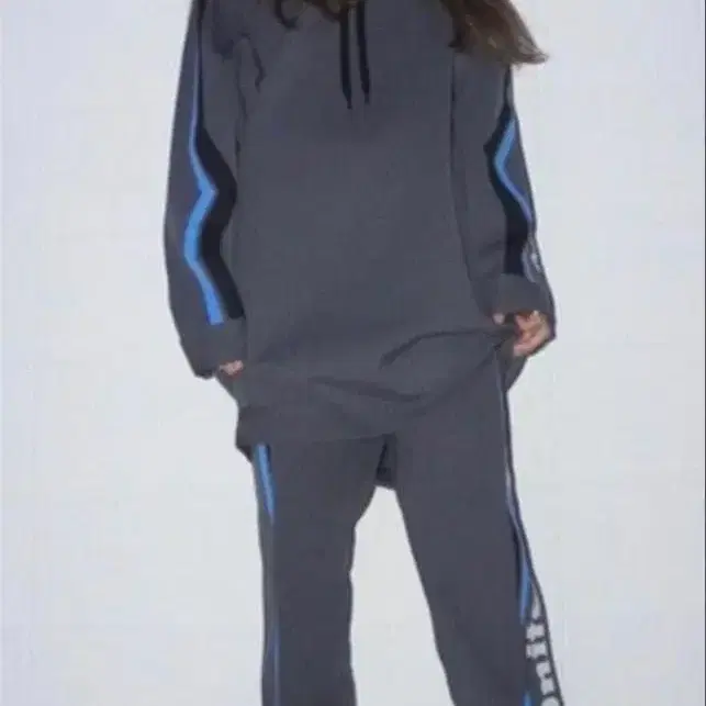 동일 소재의 팬츠와 함께 스트릿 무드의 셋업 스타일로도 연출 가능.