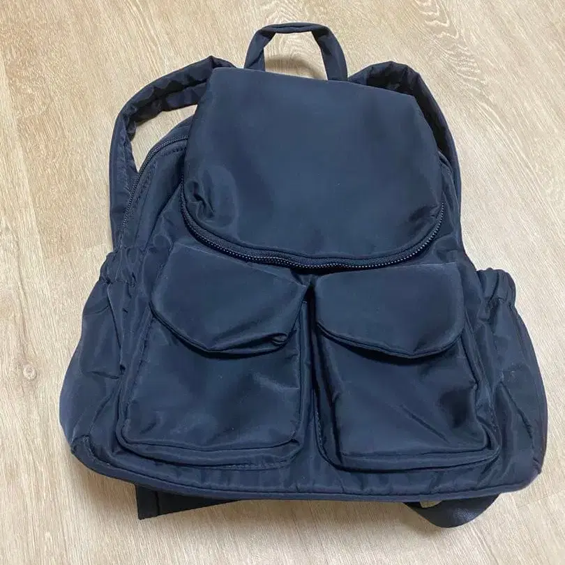 네이비 합성 피혁 럭색 백팩