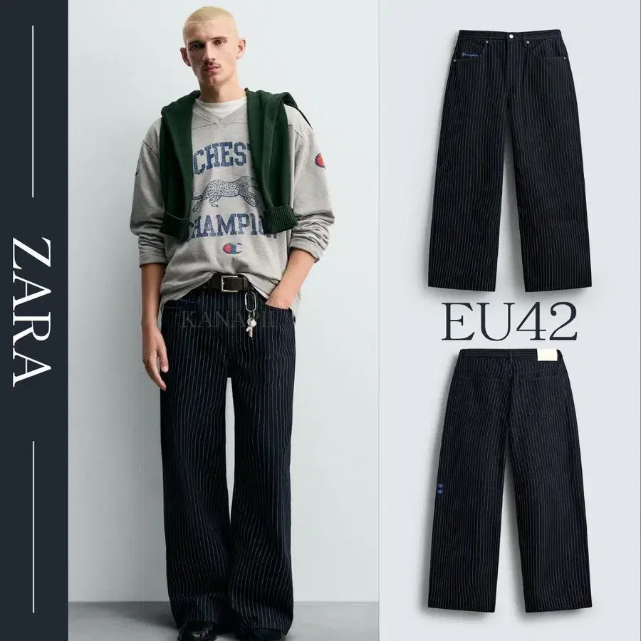 CHAMPION X ZARA 스트라이프 배기 핏 청바지 42