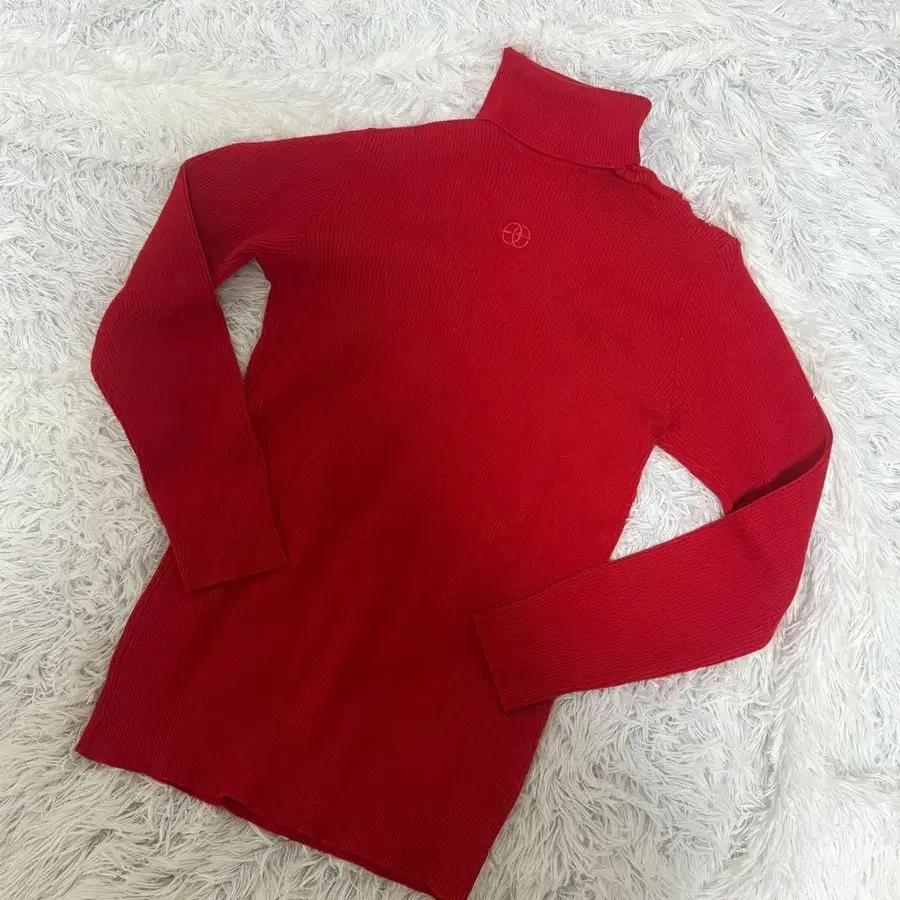 빨간색 터틀넥 스웨터 튜닉 원피스