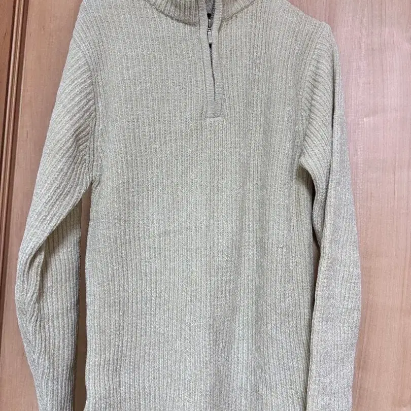 크림색 리브 하이넥 스웨터 M