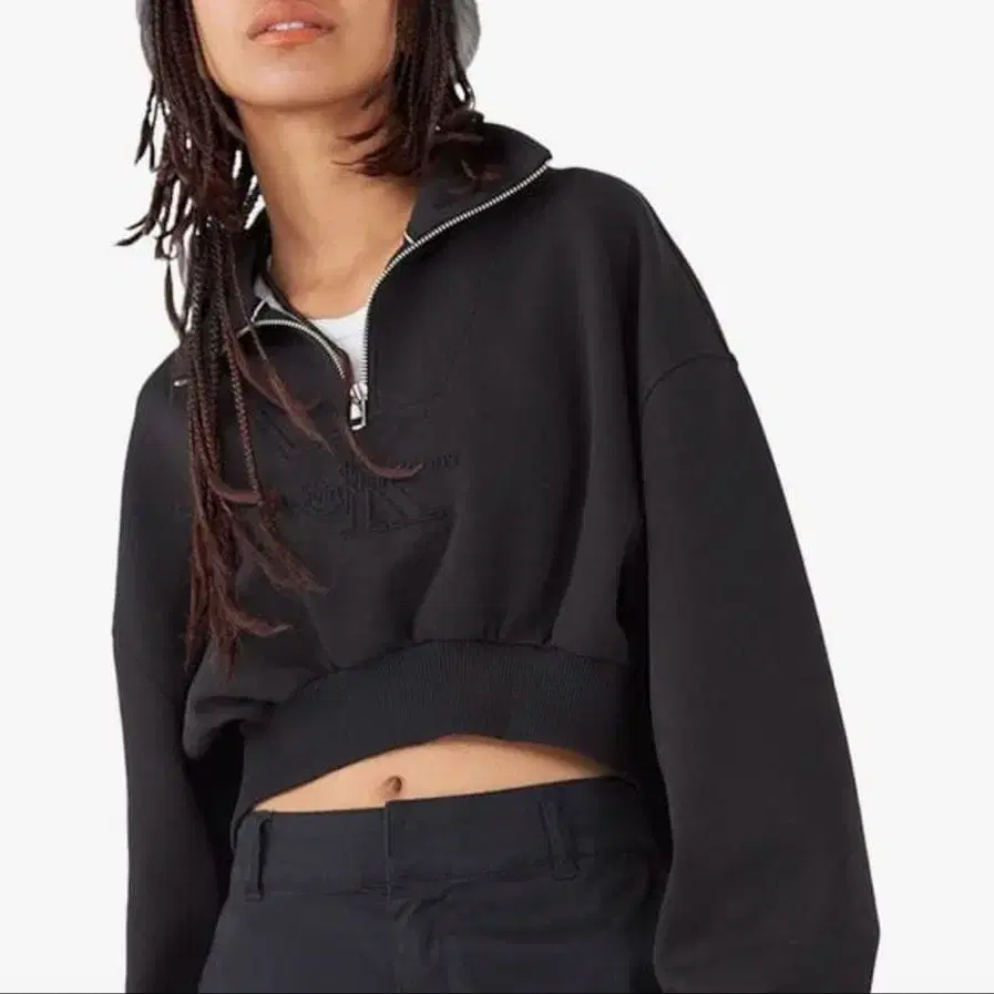 Calvin Klein 엠보싱 하프 지퍼 크롭 스웨트 셔츠