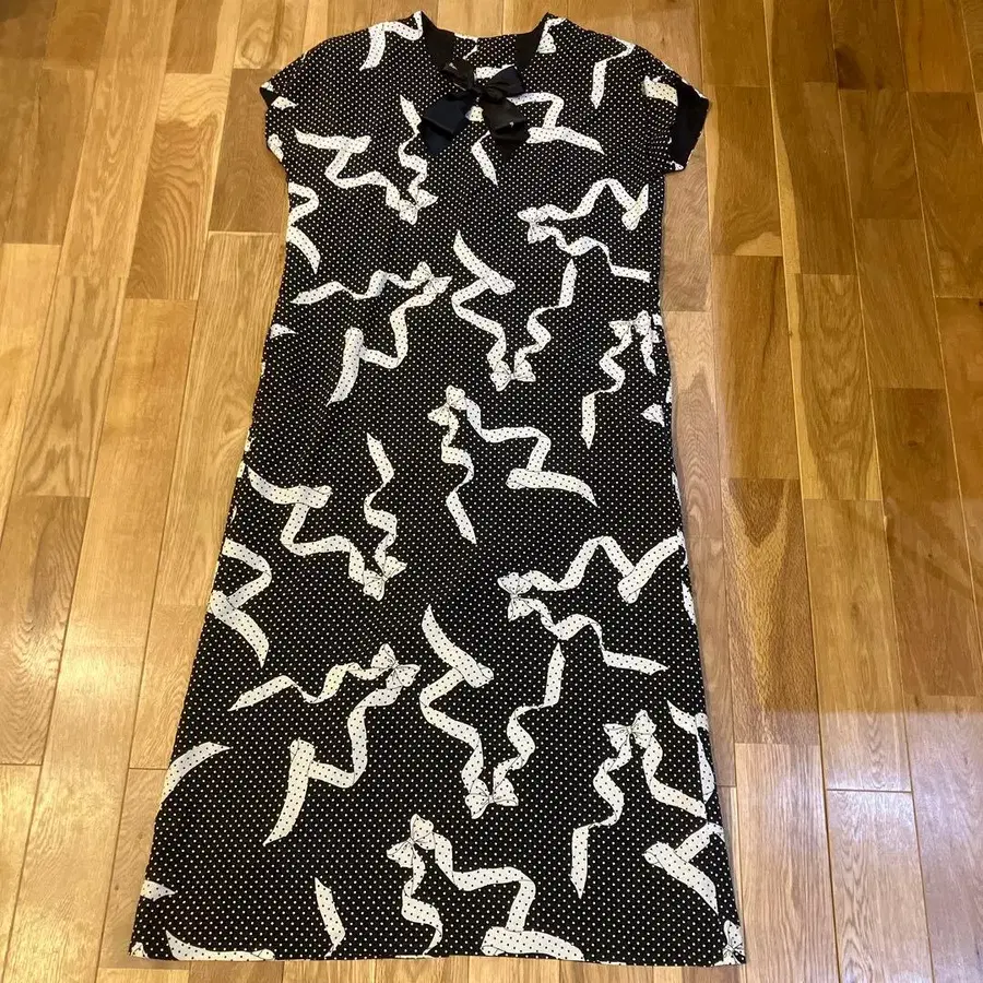 INGEBORG 블랙 화이트 도트 리본 무늬 원피스