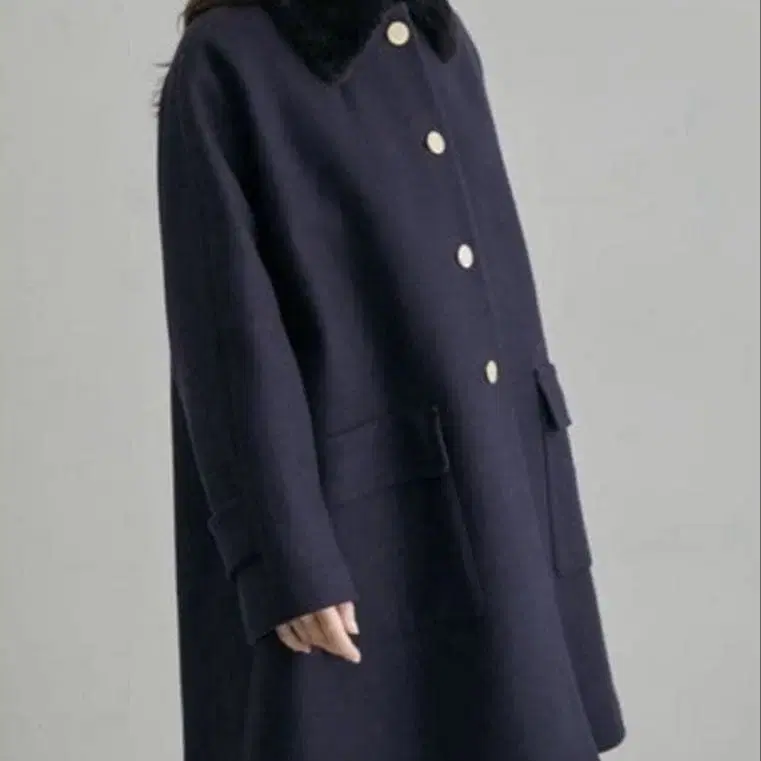 ROPE [ 2way ] 에코 퍼 탈착식 옷깃 멜톤 A라인 미들 코트