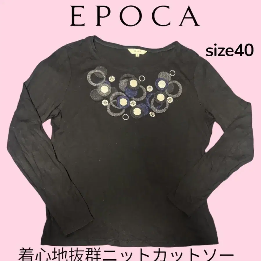 EPOCA 블랙 긴팔 티셔츠 size40 (M 상당) 메탈, 스와로 부착