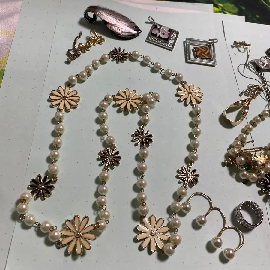 펄과 꽃 모티브의 주얼리 세트