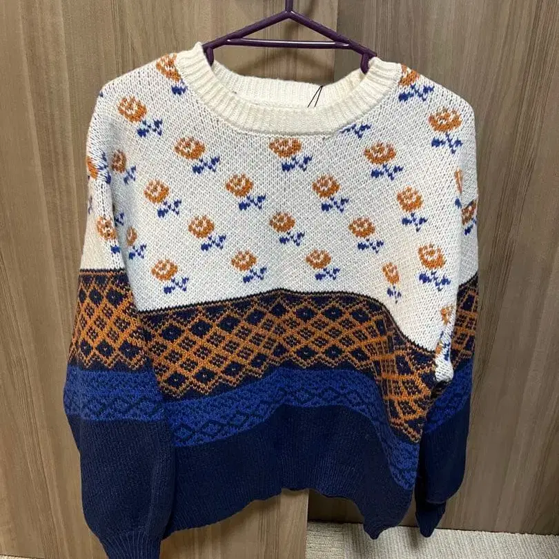 BONLECIL 꽃무늬 블록 스웨터 택 포함 새상품