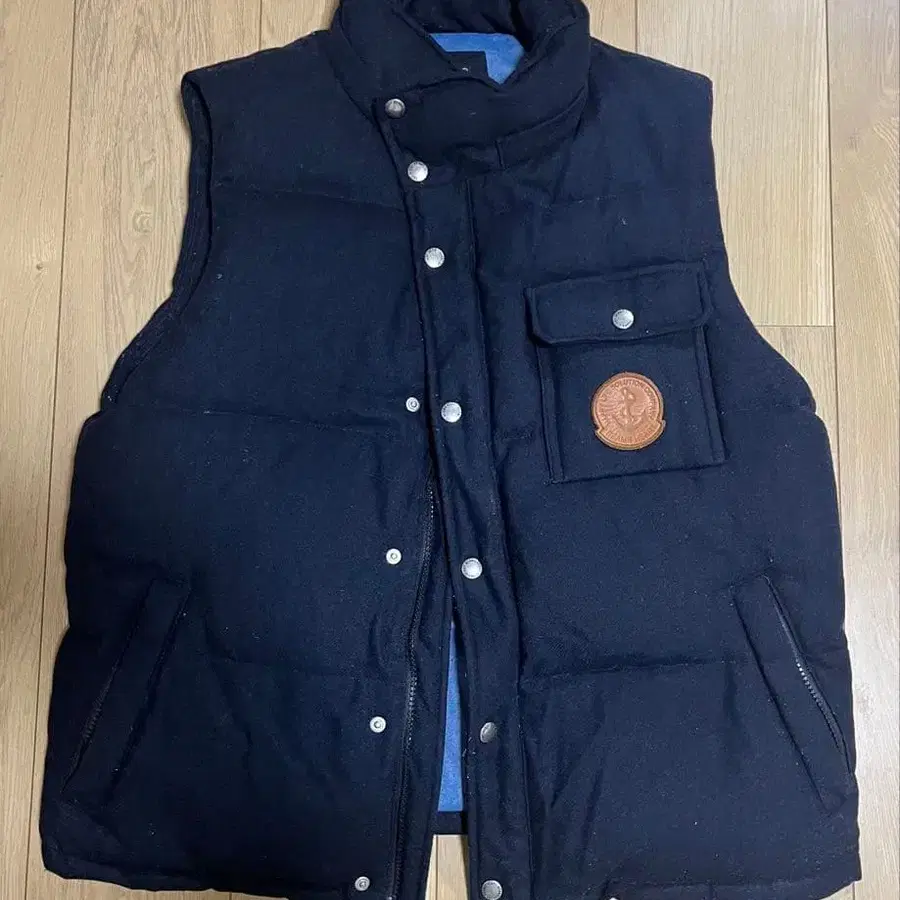 BEAMS HEART 네이비 다운 베스트 프론트 포켓 부착
