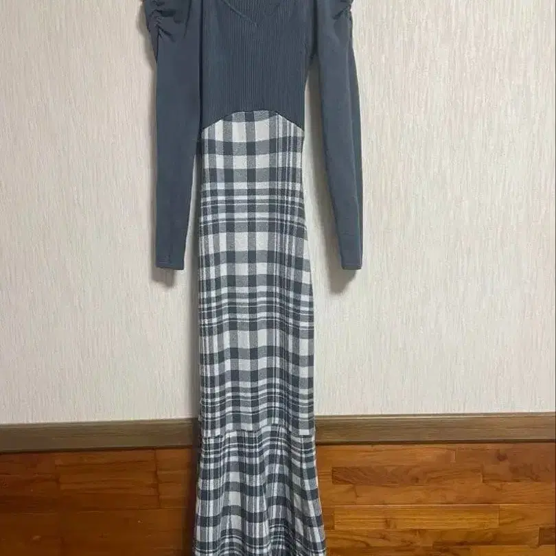 RESEXXY 숄더 오픈 머메이드 니트 원피스 블루 F