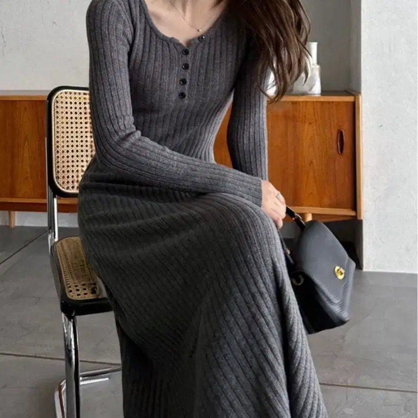 [ 미사용 ] [ Eclat one ] 라운드넥 슬림 리브 니트 원피스