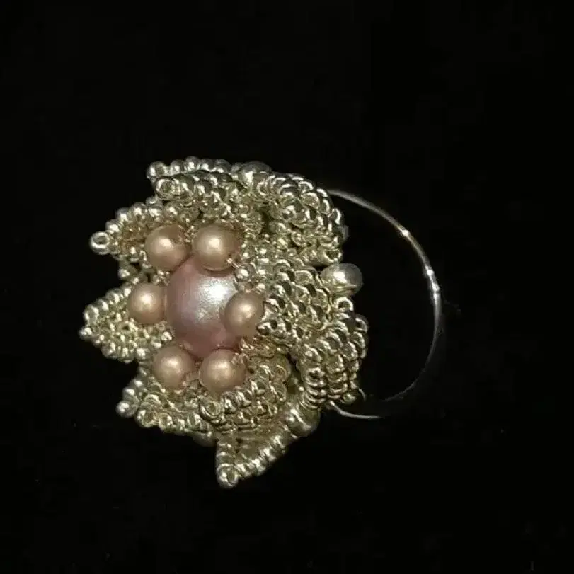 핸드메이드 꽃 모양 반지 핑크 펄 신상