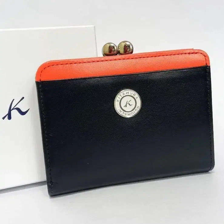 키타무라 가죽 접이식 지갑 가마구치 다크 블루/레드