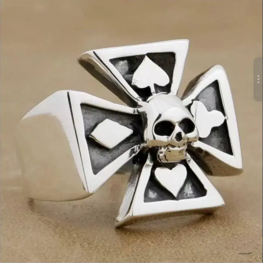 남성용 반지 실버 925 해골 x 크로스 x 4 스페이드 조합 (27호)