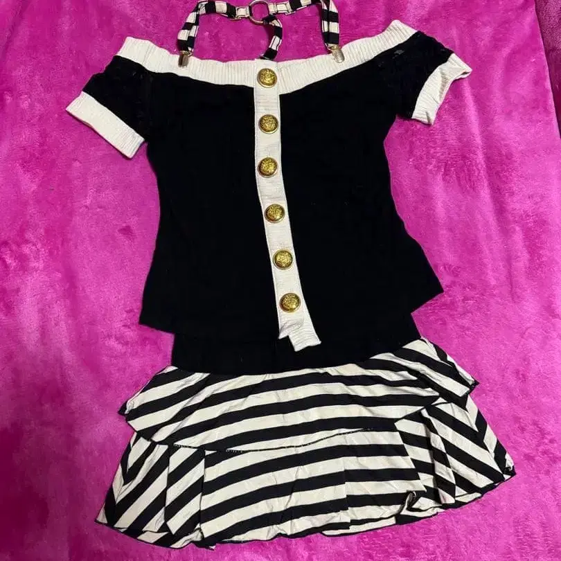 d.i.a 오프숄더 셋업 블랙과 화이트 스트라이프