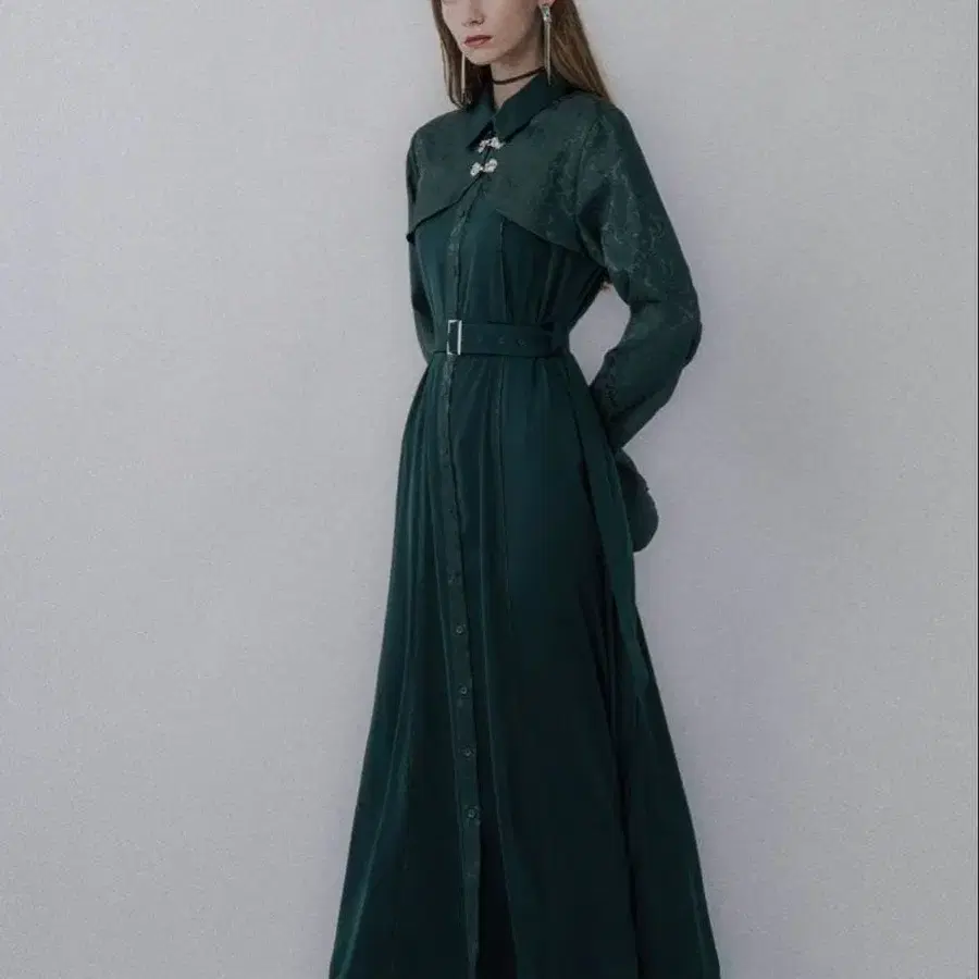 HARE 자카드 차이나 볼레로 원피스 그린