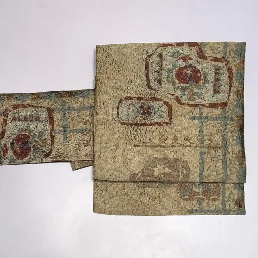 자동 번역되었어요. 원문보기차분한 베이지 계열의 색감에 코트 문양이 인상적인 오리엔탈 분위기의 나고야 오비입니다.