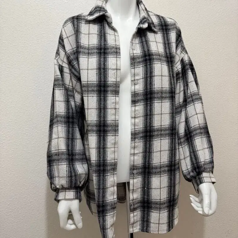 스톤 비쥬 부착 가을/겨울 소재 체크 무늬 셔츠 긴팔