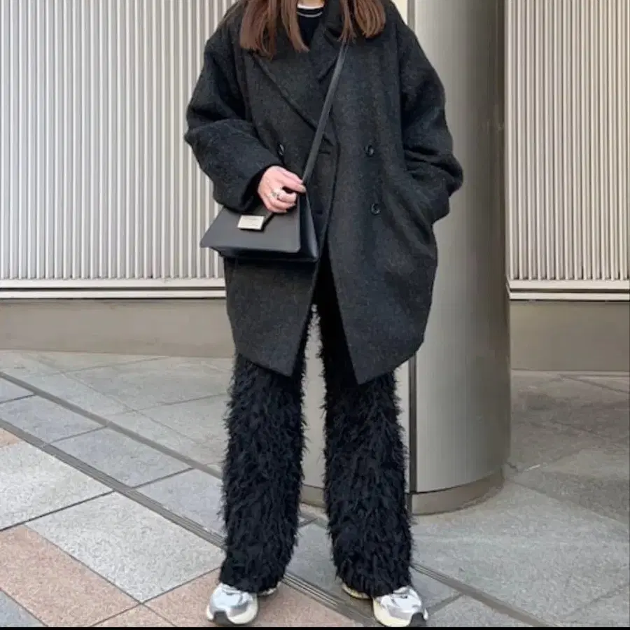 새상품급 P코트 울 블렌드 샤기 코쿤 코트