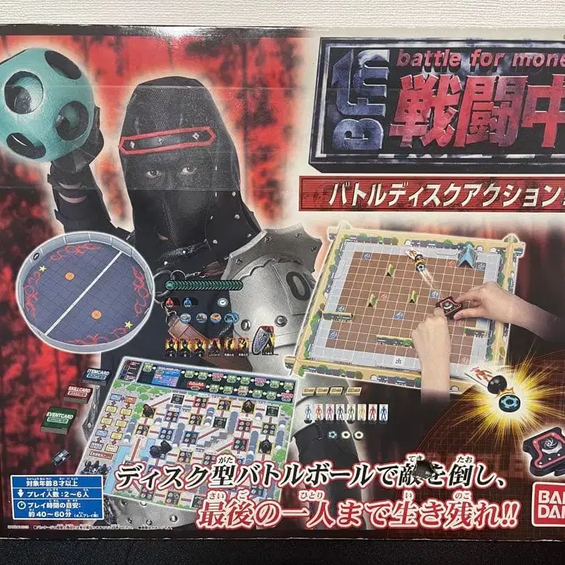 게임 보드 일체, 각종 카드 x 33장, 각종 칩 x 62개, 플레이어 말 x 6개, 출전자 말 x 8개, 닌자 스탠드 x 7개, 배틀용 말 x 8개, 슈터, 배틀 디스크 x 4개 (노멀 디스크 x 2개, 닌자용 디스크 x 2개), 주사위, 사용설명서