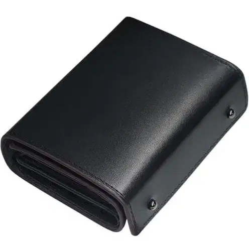블랙 가죽 이단 접이식 지갑 수납력 발군