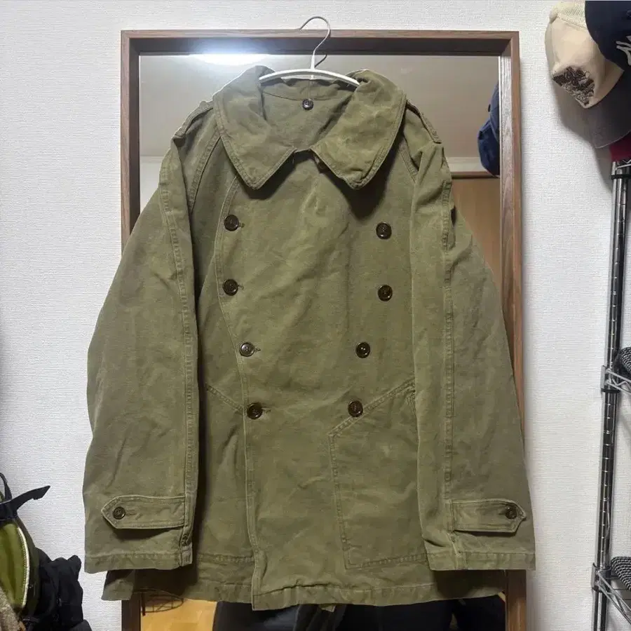 프랑스군 M38 모터 사이클 자켓 size 6 얇아졌지만, 6이라고 쓰여 있습니다. 3번째 사진에 얇게 각인이 있습니다. 민트급 컨디션 왼쪽 겨드랑이 아래 스크래치 있음, 버튼 걸이 없음, 갈라짐 없음. size 6 표기 실측치수 가슴 너비 약 60cm 겨드랑이 아래에서 측정 소매 길이. 래글런 소매이므로 측정 불가 기장 약 80cm 안쪽 옷깃 아래에서 측정 개인 측정으로 인한 약간의 오차는 용서해 주십시오. 프랑스군의 빈티지 M38 모터 사이클 자켓입니다. 제조된 지 약 70년 정도 된 자켓이지만, 얼룩이나 데미지 등 없이 데드스탁에 가까운 상태의 상품입니다. 또한 다크 브라운 색상의 요소 버튼 사양이므로 전체적으로 색감 대비가 좋고, Military 특유의 투박함이 덜해 착용하기 쉬운 상품이 될 것으로 생각됩니다. 어떠신가요? 색상 카키에 올리브 색이 강함 연대에 따라 사용된 원단이 다소 다르며 원단의 질감에 따른 약간의 색감 차이가 있을 수 있으니 양해 부탁드립니다. ⭕️ 촬영 환경에 따른 약간의 색감 차이가 있을 수 있으니 이해해 주십시오. 프랑스군 유로 빈티지 프렌치 워크 유로 밀리터리 밀리터리 m38 모터 사이클 코트 모터 사이클 자켓 m35 m-35 m-38
