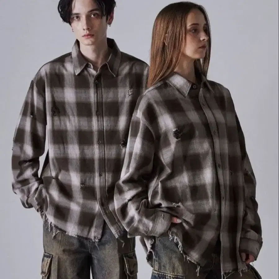 CLEL 빈티지 디자인 데미지 체크 셔츠 M 사이즈