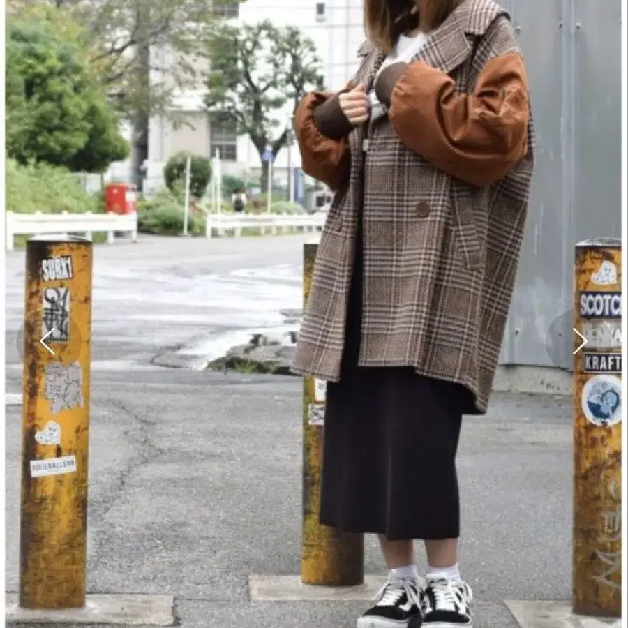 • 새상품 네이비 계열 체크 오버 사이즈 체스터 코트