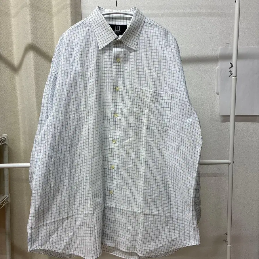 던힐 화이트 계열 체크 버튼 다운 셔츠 L 사이즈