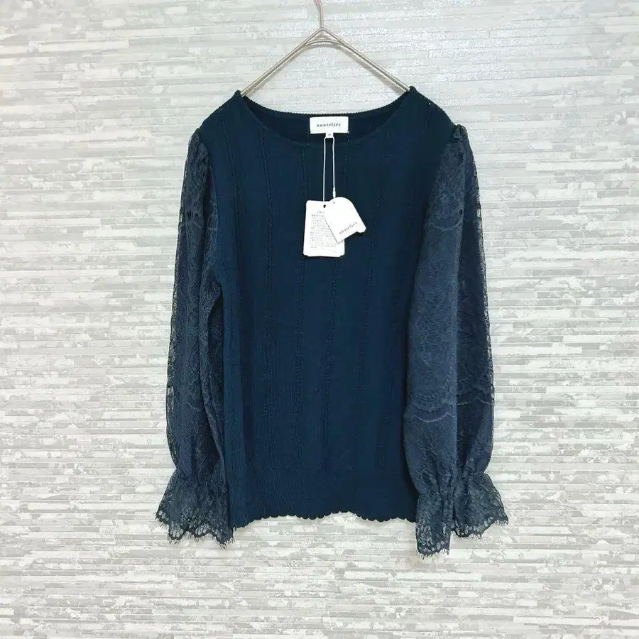 anatelier의 몸통은 깔끔한 리브 니트, 소매는 섬세한 레이스 소재를 사용한 디자인 풀오버입니다.