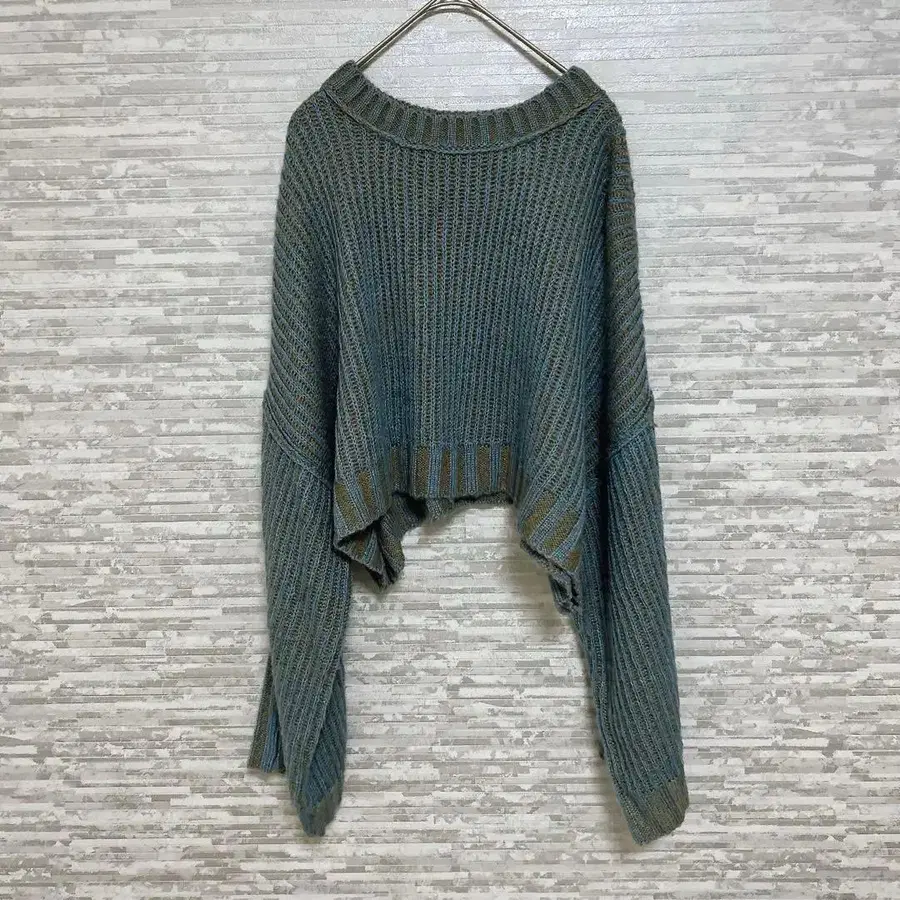• 고품질 ti. 티 [ S ] 울 혼방 니트 블루 드롭 숄더 큼직한